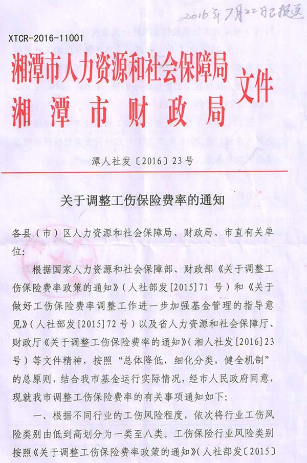 《關(guān)于調(diào)整工傷保險(xiǎn)費(fèi)率的通知》