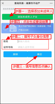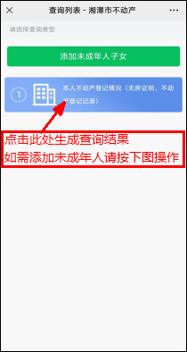 ⑸. 如需添加未成年人請點(diǎn)擊“添加未成年子女”后輸入身份信息并點(diǎn)擊確認(rèn),再點(diǎn)擊“本人不動產(chǎn)登記情況”