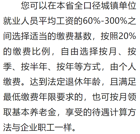 情況二:制度實(shí)施時(shí),您距60周歲的規(guī)定領(lǐng)取年齡不足15年,應(yīng)逐年繳費(fèi)至60歲。也允許補(bǔ)繳,但累計(jì)繳費(fèi)不超過(guò)15年。